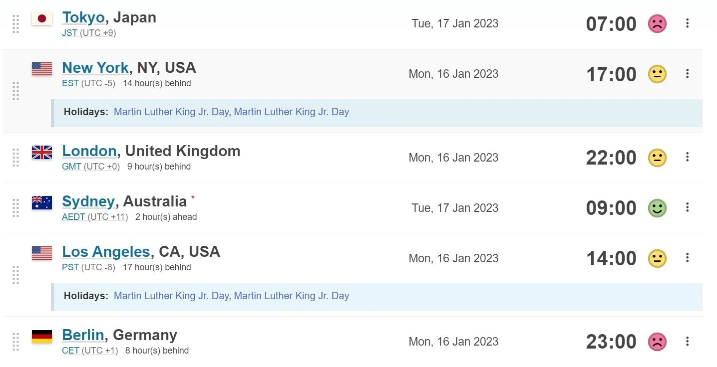 Below are some other time zones for comparison.